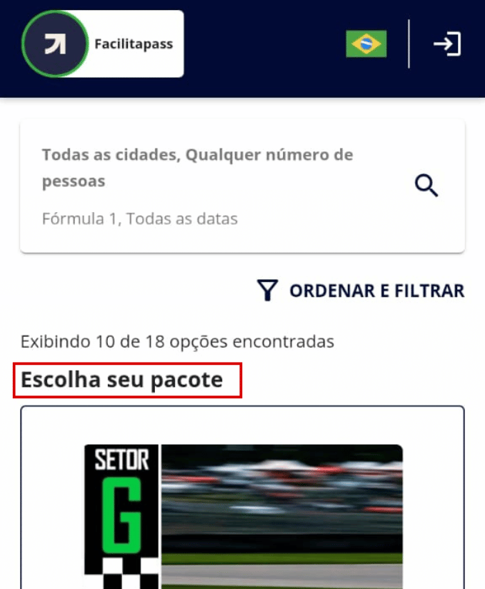Veja a lista de destinos disponíveis e selecione o GP que deseja assistir.